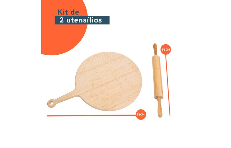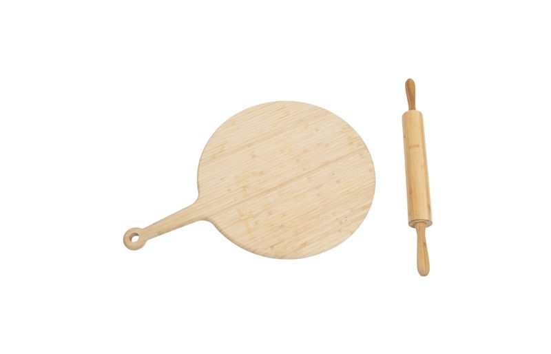 "kit tábua de pizza e rolo de massa de bambu 2 pçs - oikos