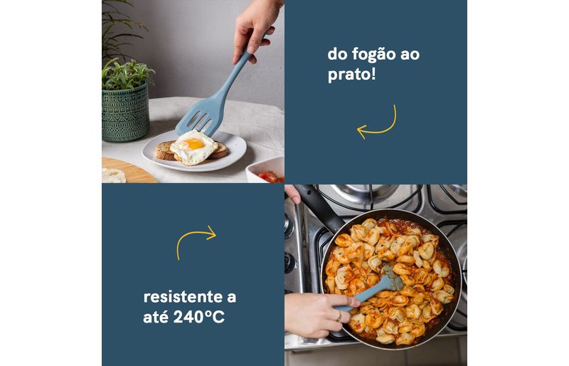 atire a primeira pedra quem nunca arranhou uma panela! por isso gostamos muito de utensílios de silicone para o preparo de alimentos, ele escorrega pela panela toda sem deixar nenhum arranhão! e você ainda pode bater a haste para tirar o excesso que ficou, sem amassar a beirada dela. o silicone também facilita e muito a limpeza, já que sua superfície lisa não retém cheiro, não prolifera bactérias e ainda não conduz o calor provocado pela chama do fogão. a linha de utensílios da oikos te ajuda nas mais diversas aventuras culinárias sem te dar o bolo.