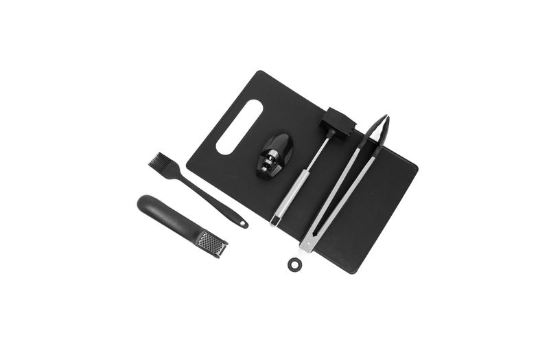 "esse é o kit utensílios de cozinha p/ churrasco 6 peças preto da oikos.