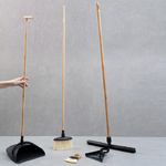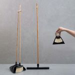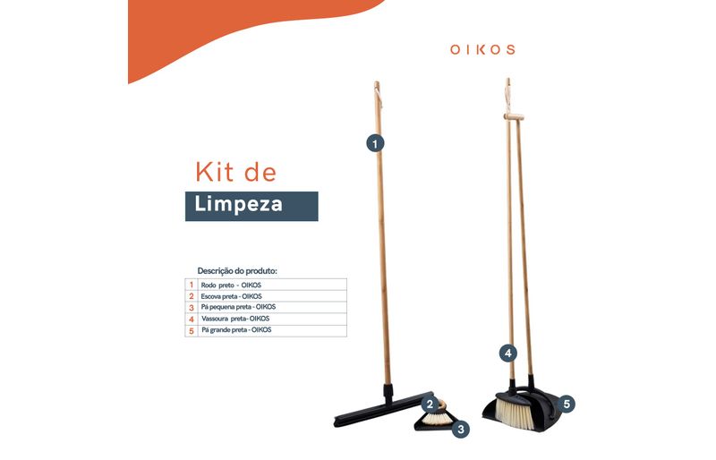 """conheça o kit com vassoura e pá com cabo de bambu, rodo com cabo de bambu, escova e pá pequena de bambu preto da oikos.