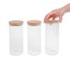 Kit com 2 potes de vidro com tampa de bambu, fruteira vazada de bambu e porta papel toalha de bambu R$ 294,90R$ 390,90Cor