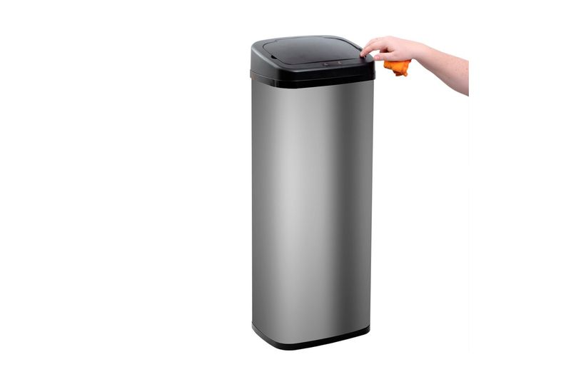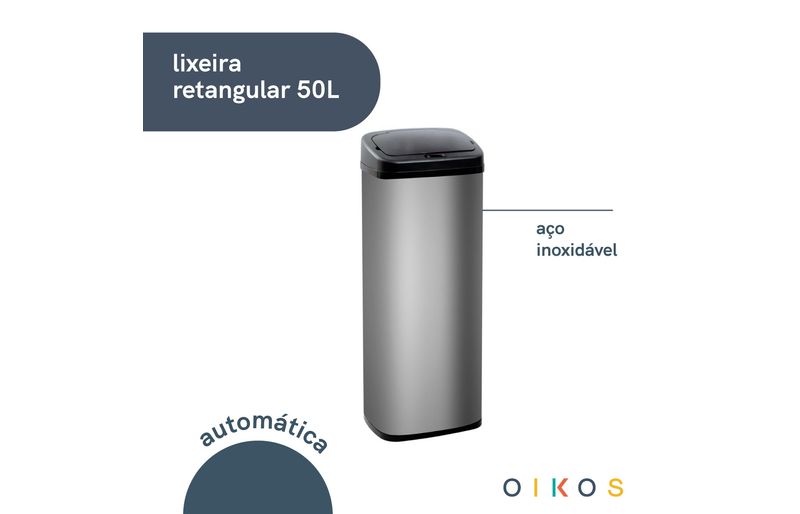 "conheça a lixeira de inox automática 50l retangular da oikos!