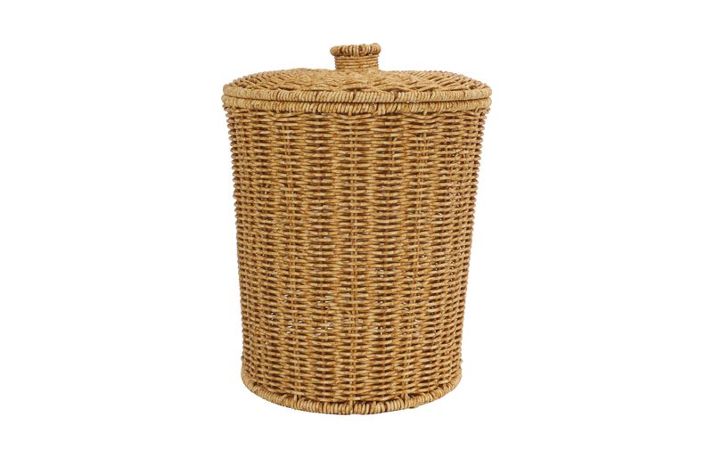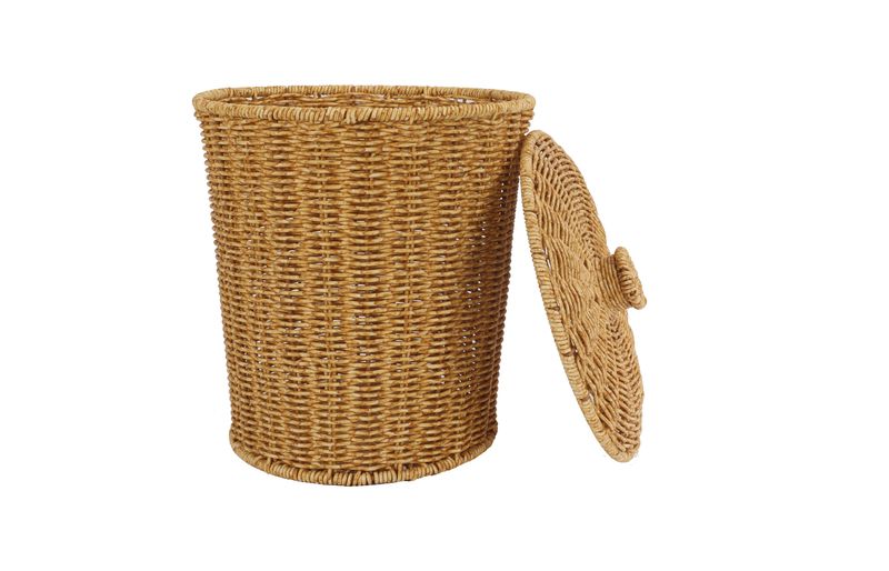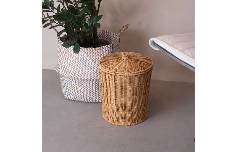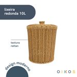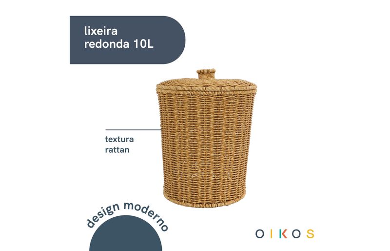 "conheça a lixeira redonda 10l com textura rattan da oikos!