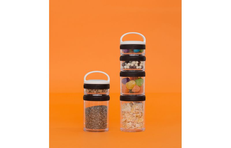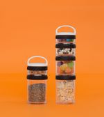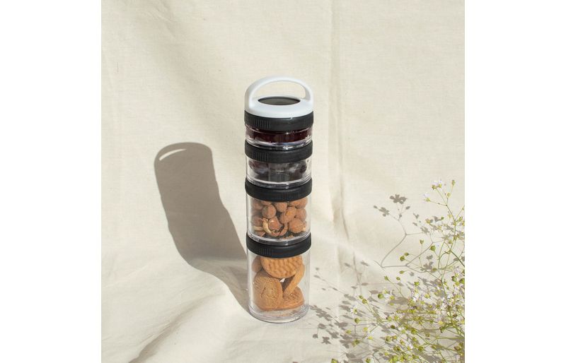 Esses são os mini potes empilháveis da oikos. são quatro potinhos empilháveis de diferentes litragens para você levar o que quiser, para onde quiser. para montar, basta girar e travar os potinhos empilhados do seu jeito. esses potinhos são ótimos para levar aquele lanchinho da tarde bem planejado ou o kit de sobrevivência da academia. super prático, vem com uma alça para te acompanhar para cima e para baixo.