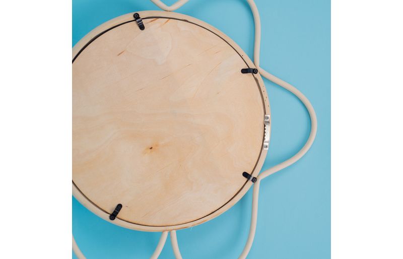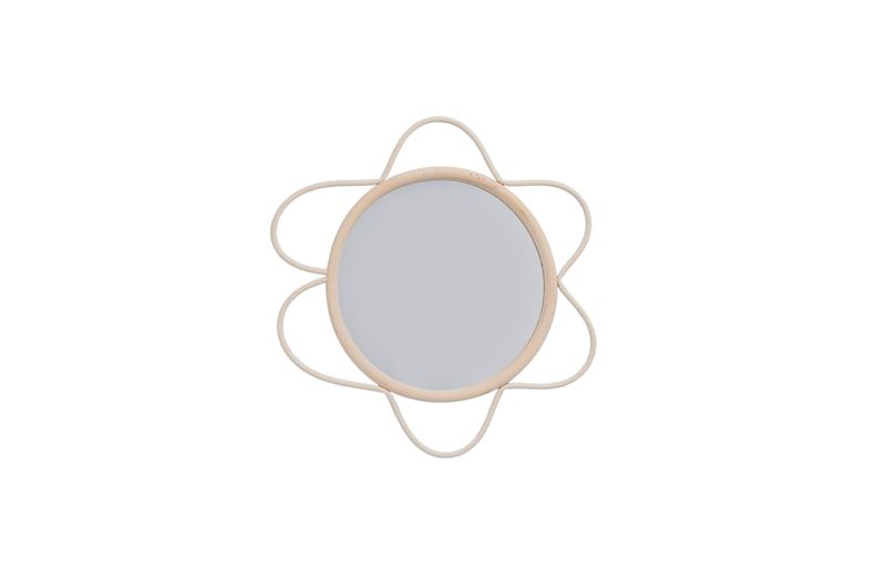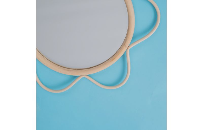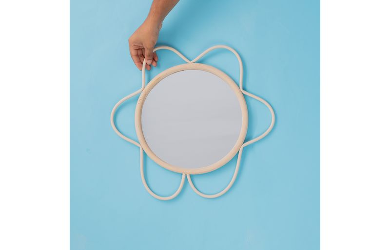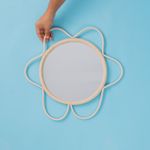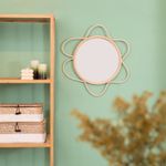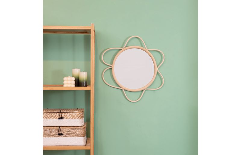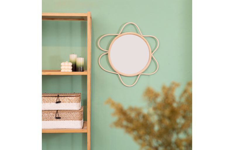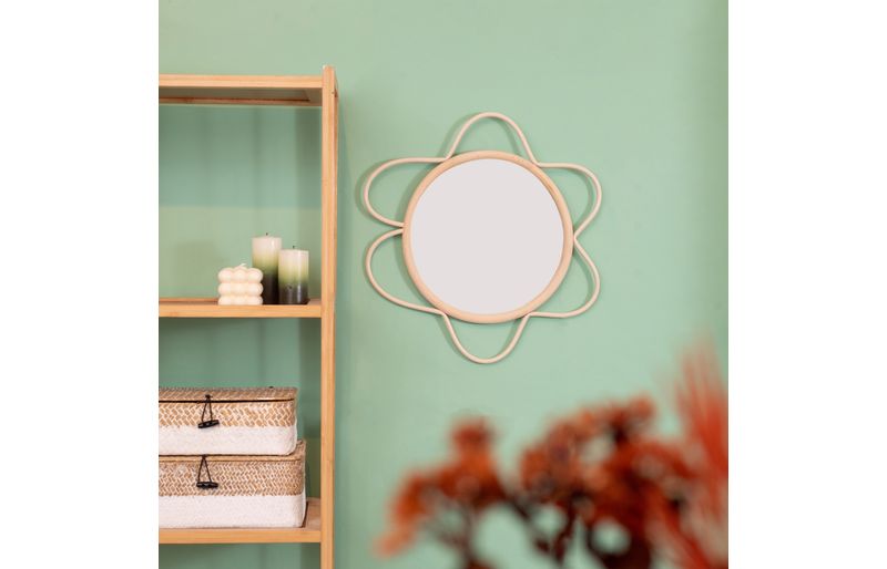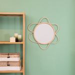 "conheça a moldura decorativa de parede flor textura rattan com espelho da oikos!