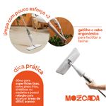 tem reservatório para água ou produto de limpeza: pode ser guardado abastecido e sempre pronto para o uso e a microfibra é de alta absorção: limpa com menos esforço e diminui a utilização de produtos químicos!