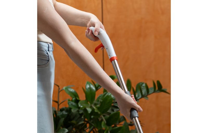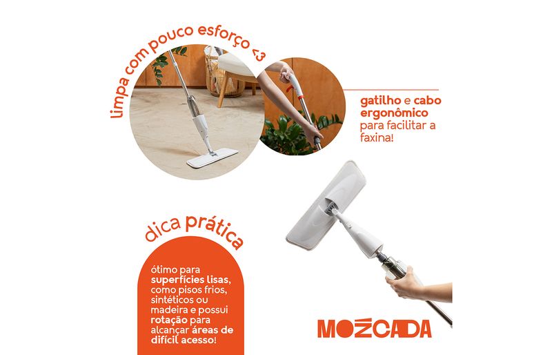 possui gatilho para borrifar o produto direto na superfície: mantém as mãos longe da sujeira e dos produtos químicos. além disso, tem rotação horizontal de 360° + rotação vertical de 180° do cabo: permite alcançar áreas de difícil acesso, como janelas e embaixo dos móveis.