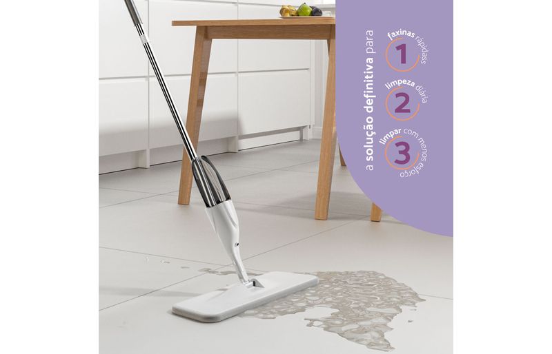 prático, moderno e econômico, faz uma faxina completa e eficiente com menos esforço. é ideal para esfregar pisos, janelas, azulejos e onde precisar. possui pano de microfibra de alta absorção e gatilho para borrifar o produto direto na superfície! mantém as mãos longes da sujeira e dos produtos químicos. além disso, tem rotação que permite alcançar áreas de difícil acesso, como janelas e embaixo dos móveis e tem reservatório para água ou produtos de limpeza.