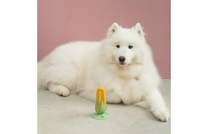 :: saudável: os relevos do milho massageiam a gengiva do seu amigo e ajudam a limpar seus dentes enquanto ele brinca. xô, tártaro!