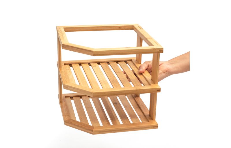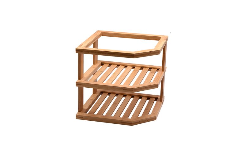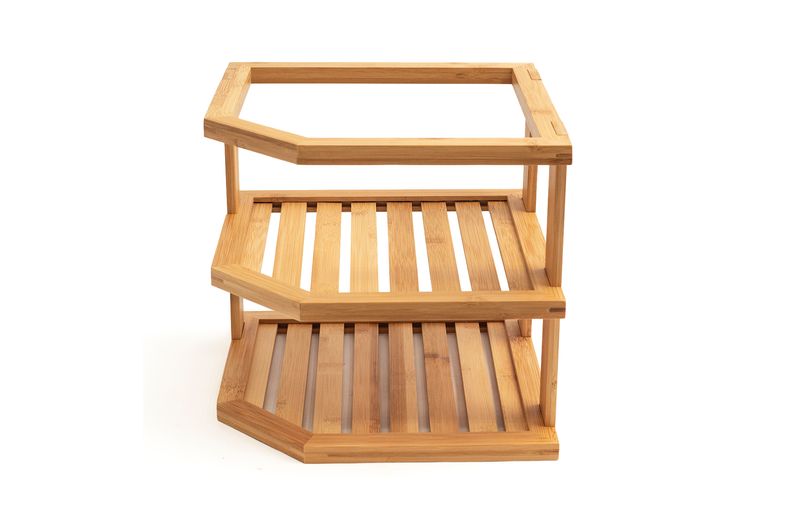 ":: esse é o organizador de canto de bambu 2 andares da oikos.