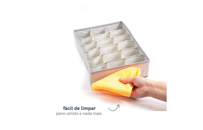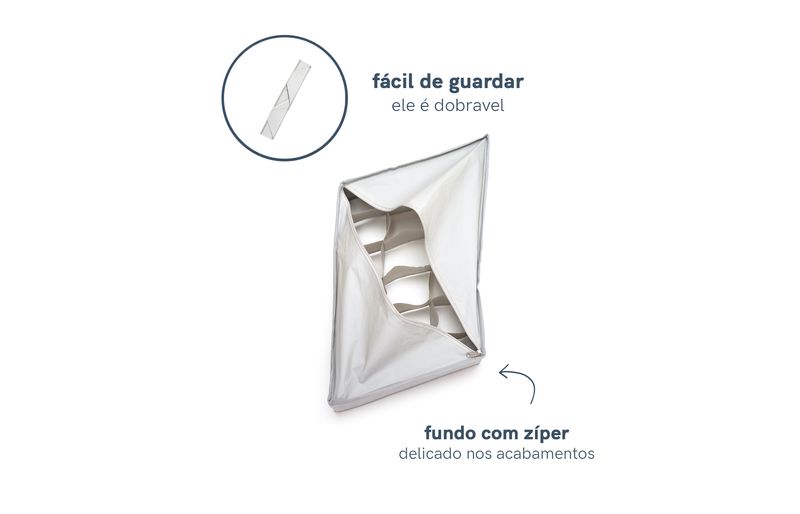 :: fácil de guardar: com acabamento delicado, é só abrir o zíper que tem no fundo para dobrar o organizador.