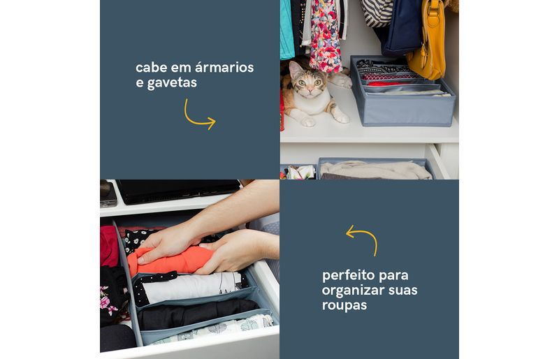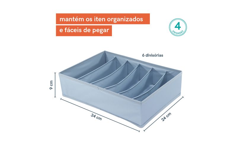 4 unidades do organizador dobrável com 6 divisórias azul - oikos