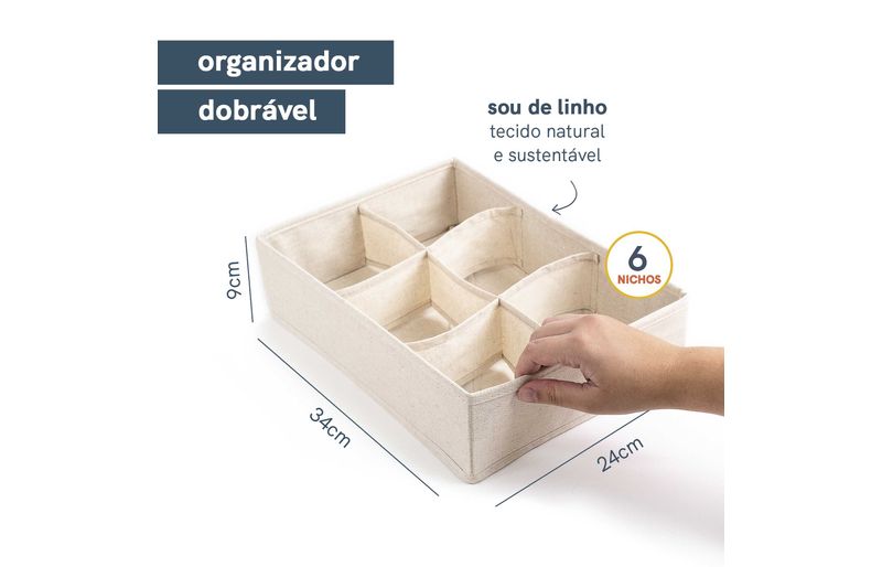 :: esse ã© o organizador dobrã¡vel com 6 divisã³rias quadradas linho off white da oikos.