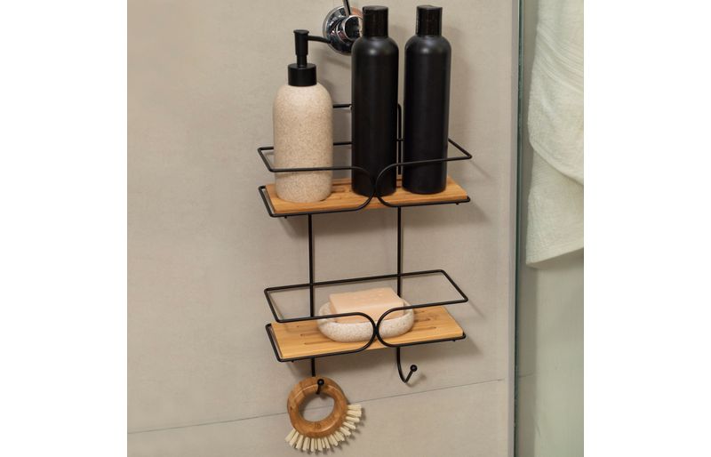 :: esse ã© o organizador suspenso 2 andares e ganchos ferro e bambu da oikos.