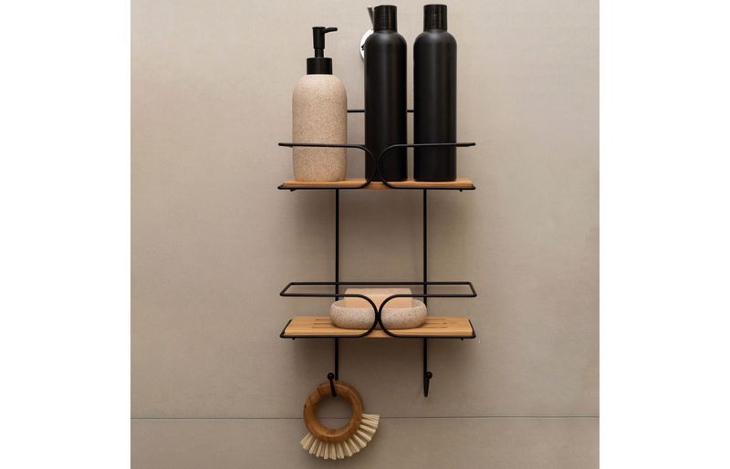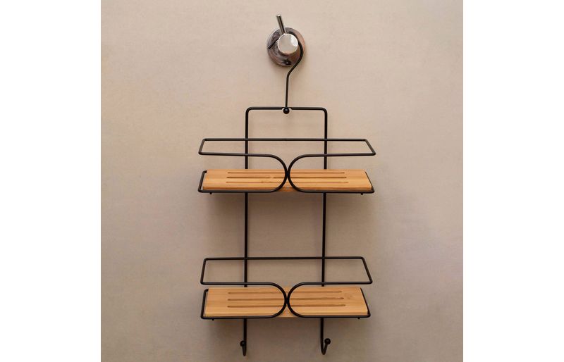 :: com duas prateleiras e dois ganchos inferiores: sua forma vertical simplifica o apoio de diversos produtos de uma sã³ vez. otimiza os espaã§os e deixa tudo bem acomodado. nada de objetos espalhados pela casa. ideal para cã´modos mais agradã¡veis e convidativos.