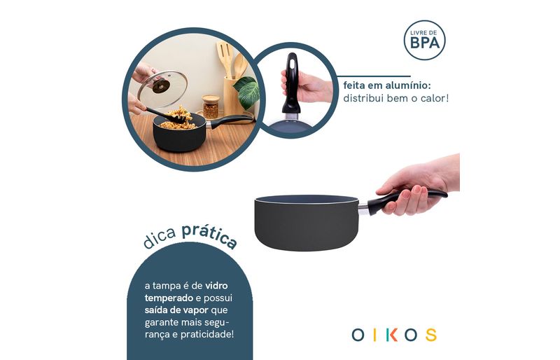"conheça a panela antiaderente de cerâmica 18cm da coleção base da oikos!