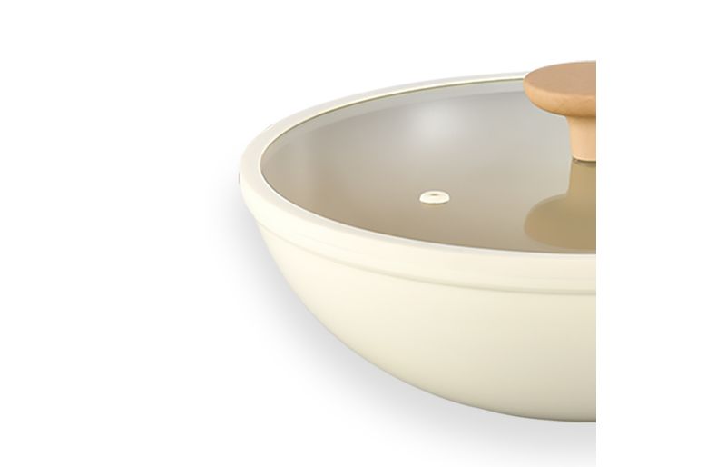 o cabo é em baquelite com textura de madeira: resistente a altas temperaturas - não esquenta! a tampa é reta com borda de silicone: vedação aprimorada e menos desgastes na borda das panelas. a tampa de vidro temperado tem saída de vapor que promove mais segurança. a textura amadeirada do cabo e os tons delicados da linha nata no corpo da panela transformam o ambiente e encantam as visitas. :)