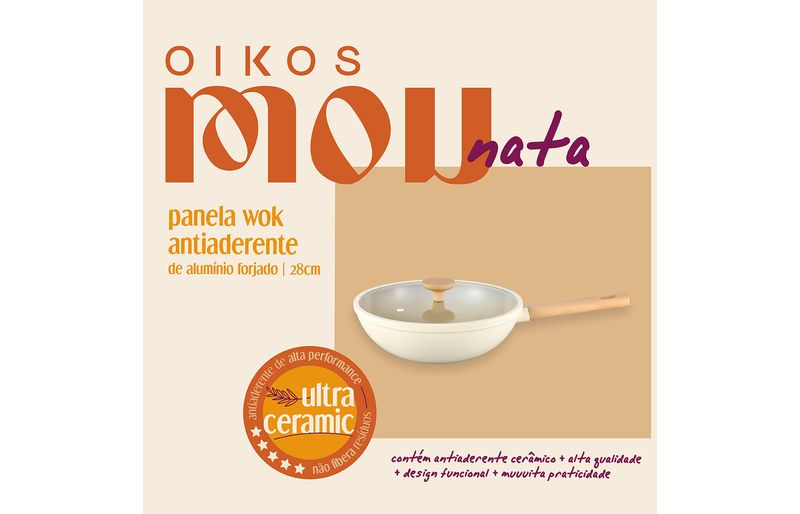 "conheça a panela wok antiaderente ultra ceramic indução mou nata 28cm da oikos!