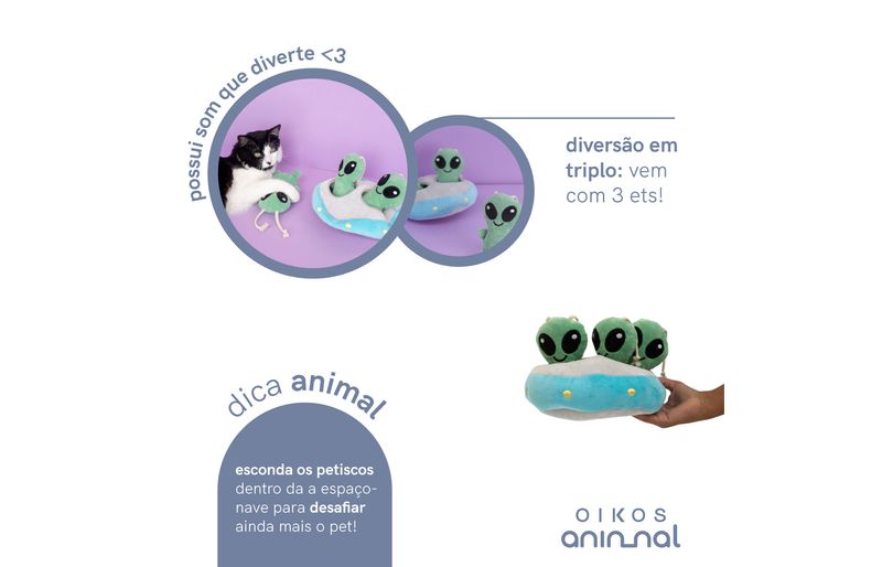 educativos e interativos, são pelúcias educacionais que mantém seu animal estimulado mentalmente! os etezinhos desencaixam da espaçonave e ficam soltos para deixar a brincadeira ainda mais divertida. perfeitos para aguçar a curiosidade e raciocínio do seu pet enquanto desvenda as pelúcias.