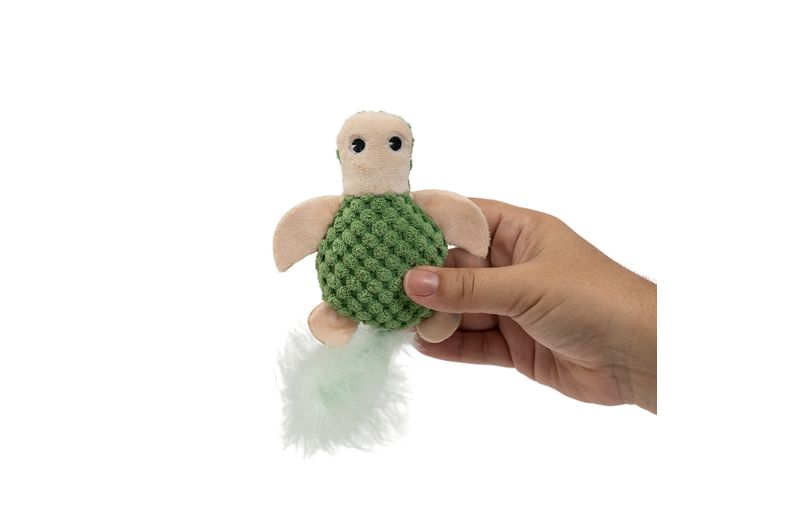 divertida e moderna, é uma pelúcia em formato de tartaruga recheada com catnip, também conhecida como a erva gateira, a erva mais amada dos felinos! estimula, distrai e alivia o estresse do seu gato. além disso, possui formato e textura que diverte seu pet! tem pena para atrair o felino para brincadeira e deixar a farra ainda mais divertida.