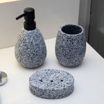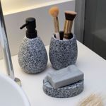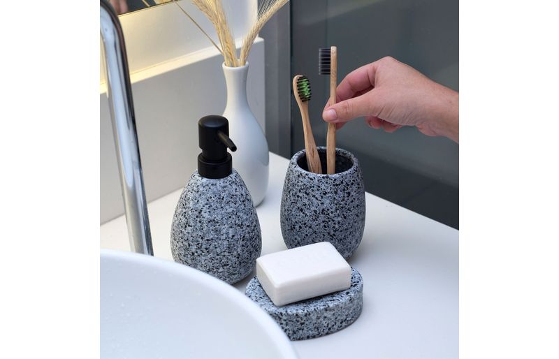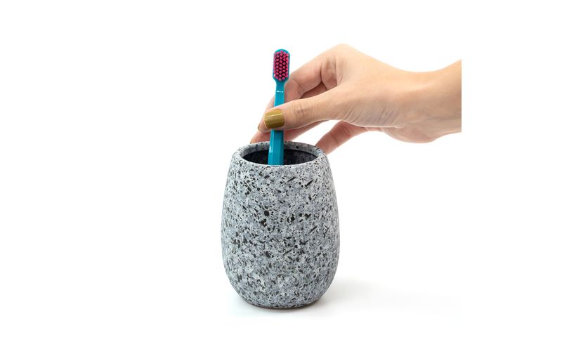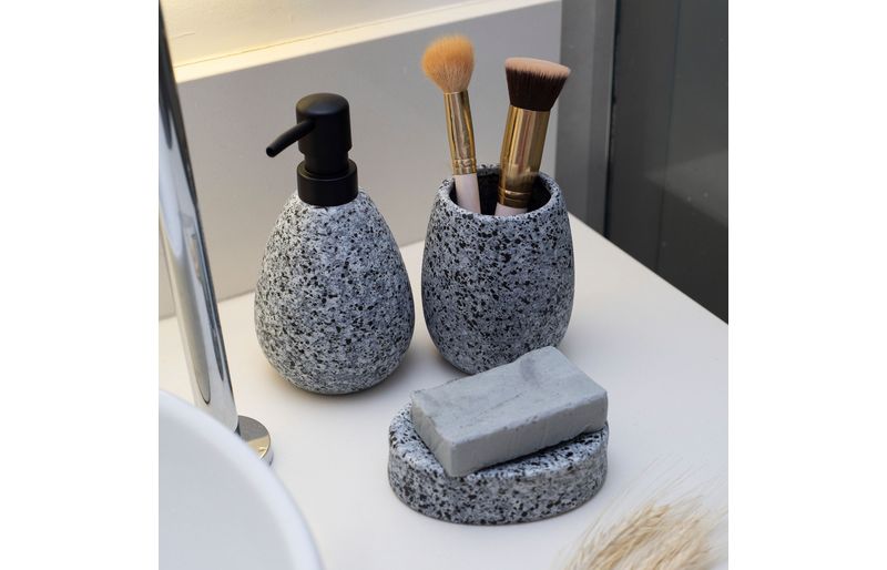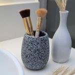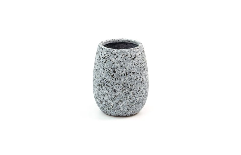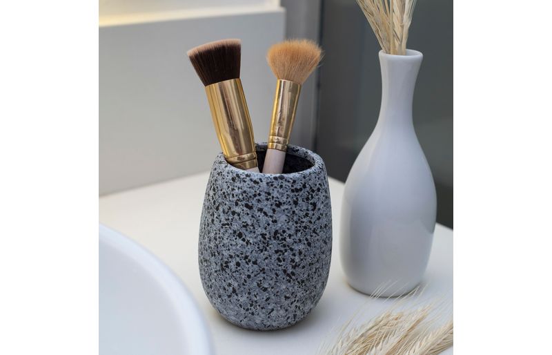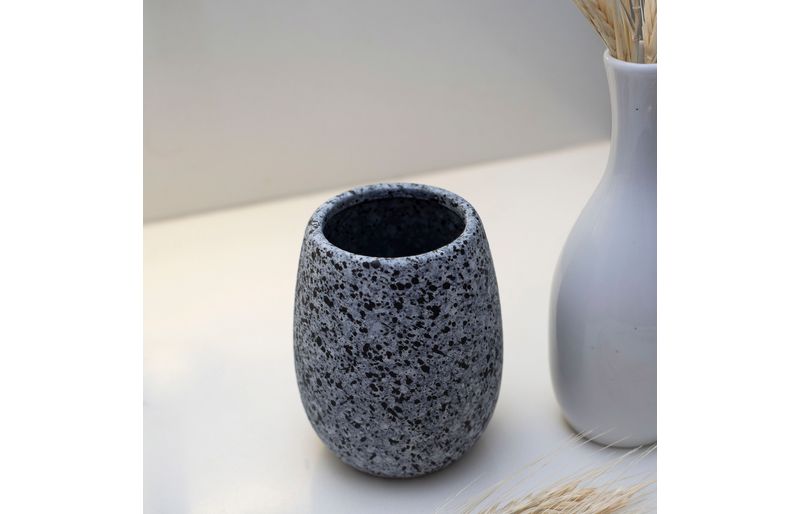 "esse é o porta objetos de cerâmica granulado cinza da oikos.