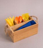 :: decorativo: o formato e o tom natural desse porta talheres deixam o ambiente rãºstico e cheio de bossa. ele fica bem na mesa posta e na bancada da cozinha :)