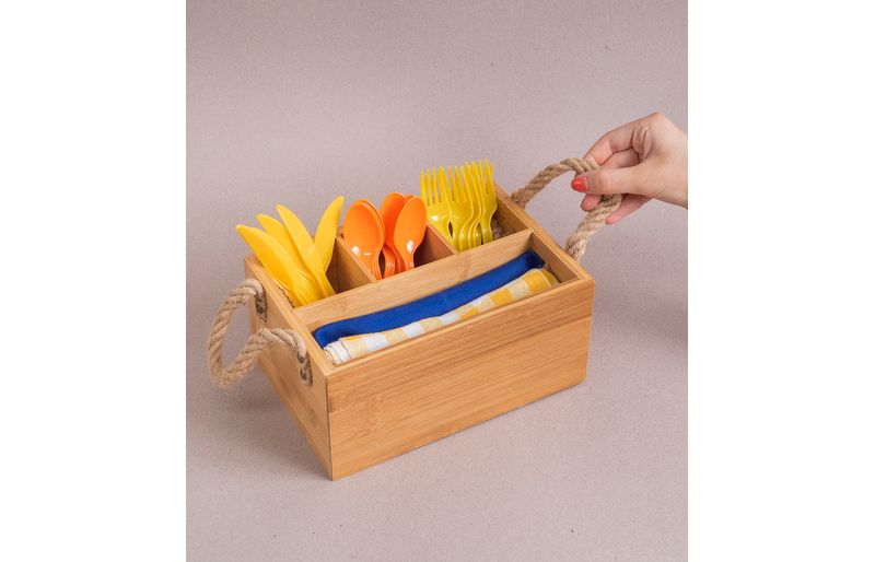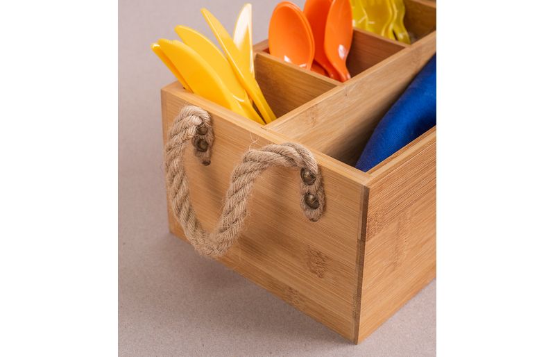 :: esse ã© o porta talheres de bambu com alã§a natural da oikos.