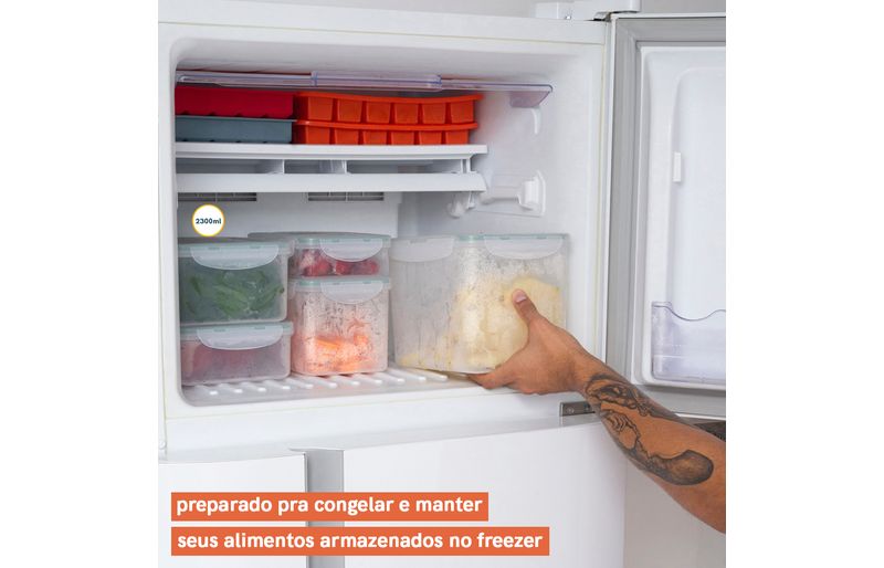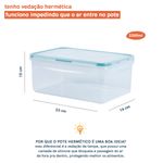 :: veda de verdade: tem 4 travas de vedaã§ã£o e um anel de silicone, ideal para conversar diferentes tipos de alimentos.