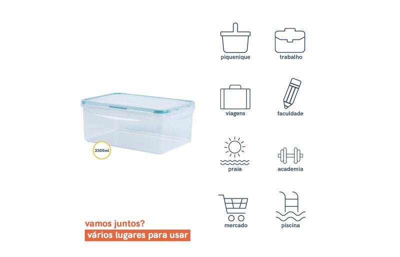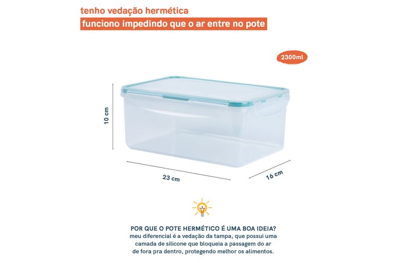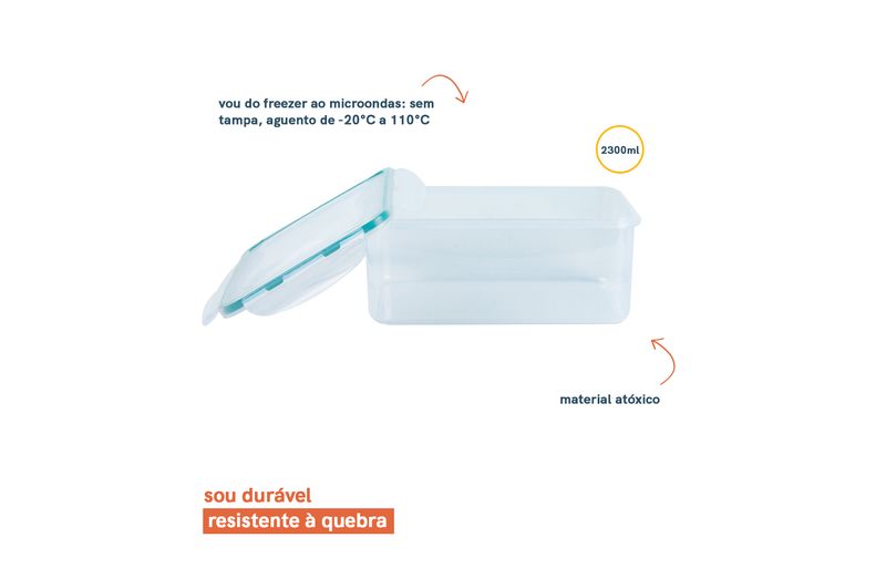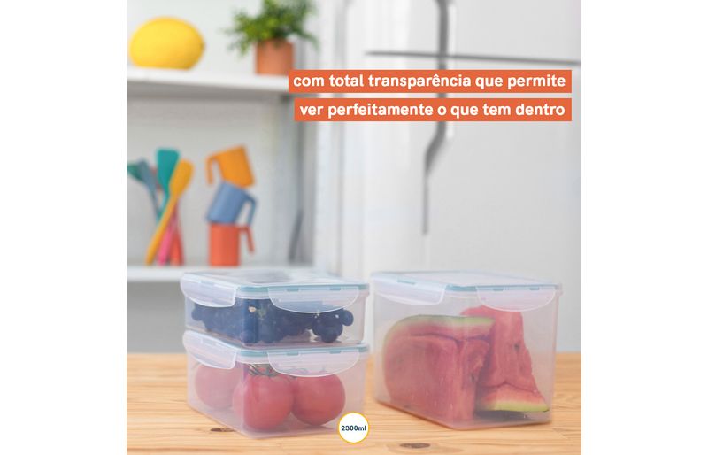 :: esse ã© o pote 2,3l de plã¡stico transparente retangular hermã©tico cliq da oikos.