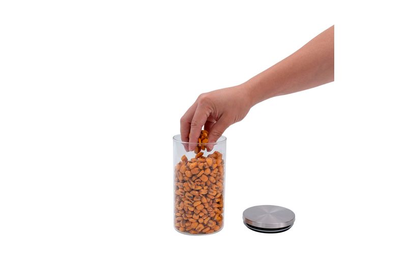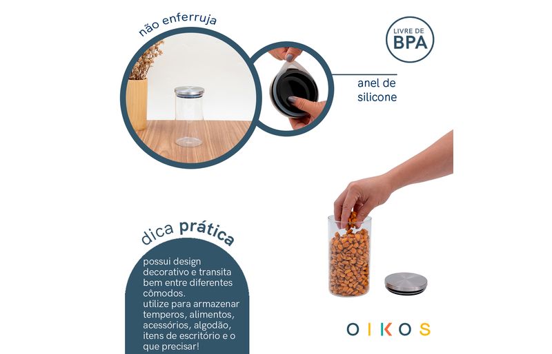 ele é empilhável, durável, possui design moderno e é super versátil! perfeito para armazenar alimentos, temperos, algodão, acessórios e o que precisar! além disso, é mestre na conservação: o anel de silicone na tampa garante uma vedação total do pote, conservando os alimentos por muito mais tempo. além disso, possui tampa em inox: sua tampa lisa é fácil de limpar, além de ficar uma graça na cozinha.