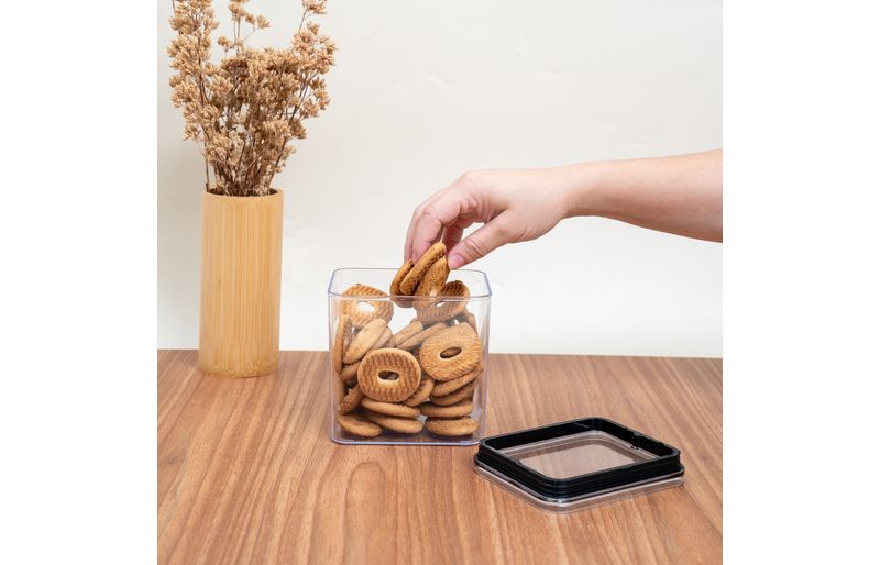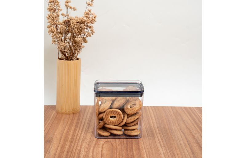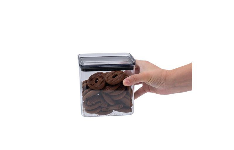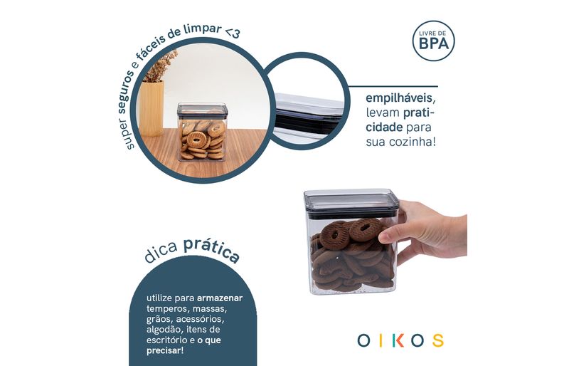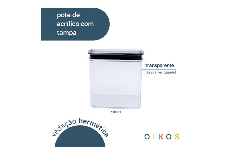 Conheça o pote de acrílico 1,1l com tampa transparente quadrado empilhável da oikos!