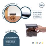 ele é empilhável, durável, possui design moderno e é super versátil! perfeito para armazenar alimentos, temperos, algodão, itens de escritório e o que precisar! além disso, é mestre na conservação: o anel de silicone na tampa garante uma vedação total do pote, conservando os alimentos por muito mais tempo.