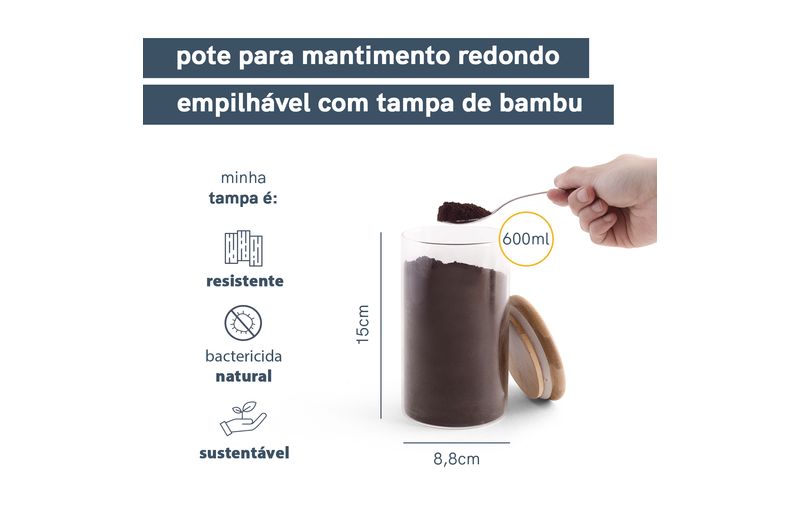 ":: esse é o pote de mantimentos empilhável com tampa de bambu 600ml da oikos.