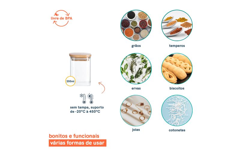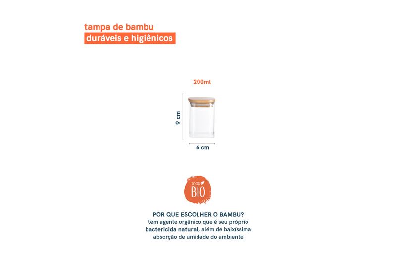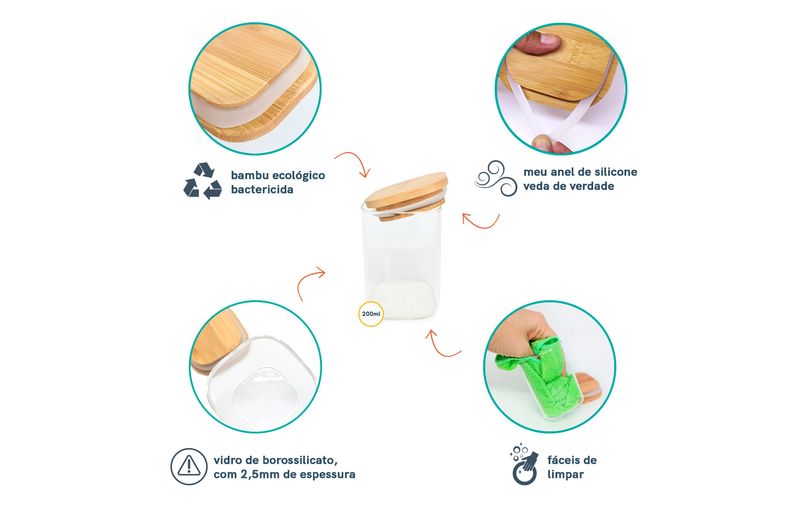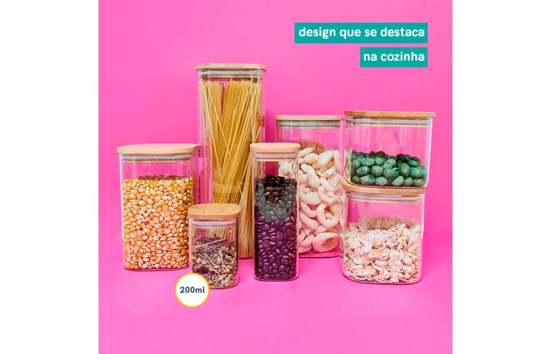 potes e mais potespotes com tampa de bambuPote de mantimentos quadrado flat 200ml tampa bambu - oikos