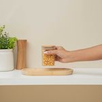 :: esse é o pote de mantimentos com tampa de bambu da oikos.