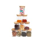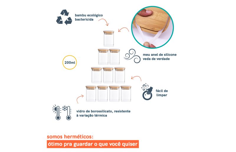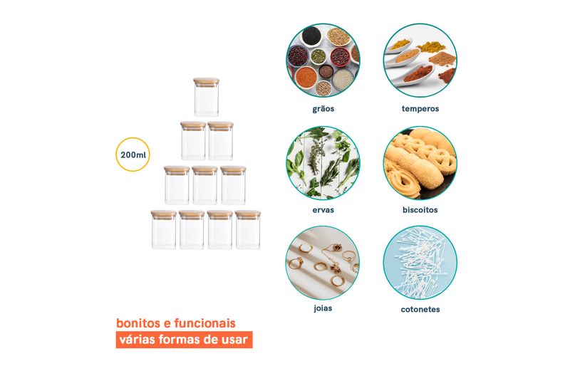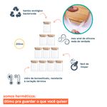 10 unidades - pote 200ml de vidro flat com tampa de bambu quadrado mantimento - oikos