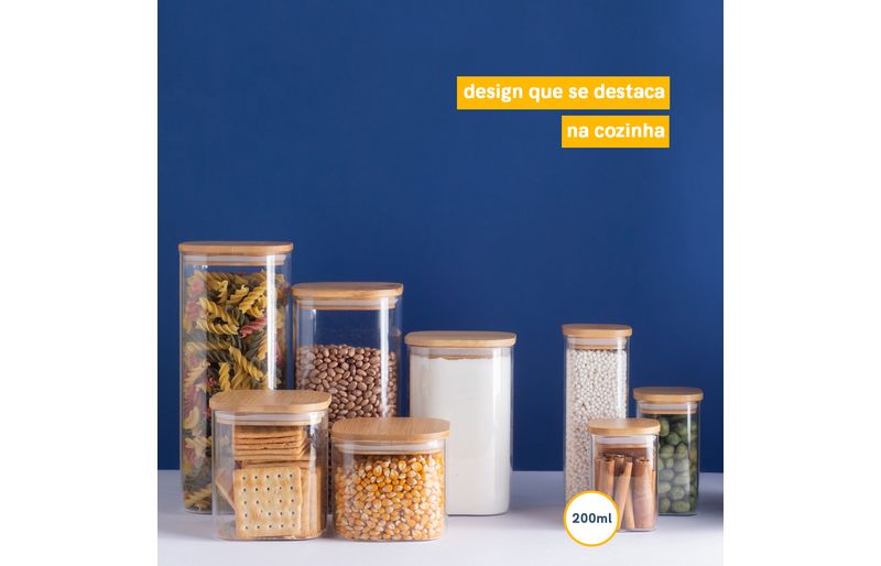seu formato quadrado ajuda a aproveitar melhor o espaço - ele encaixa direitinho no canto do armário. e não para por aí: sua tampa de bambu é empilhável, o que ajuda mais um pouquinho a aproveitar o espaço disponível em casa. e não julgue pelas aparências, ele não é só um potinho bonito: com a combinação da vedação de silicone e o bambu antibacteriano, esse pote se torna um verdadeiro mestre na conservação de alimentos! e não é só de comida que vive esse pote: pisca-pisca, pregadores de roupa, decoração de natal, nozes, flores secas, fios, jogos e o que mais você quiser guardar - isso que é versatilidade.