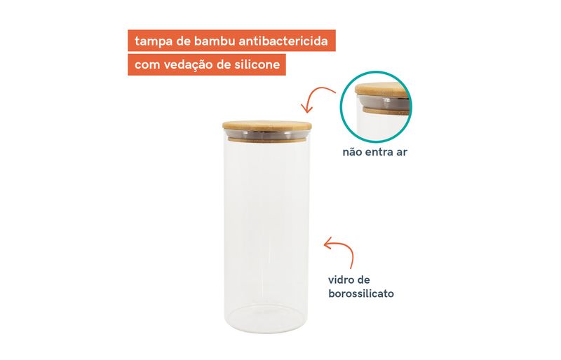não julgue pelas aparências, ele não é só um potinho bonito: com a combinação da vedação de silicone e o bambu antibactericida, esse pote se torna um verdadeiro mestre na conservação de alimentos!