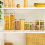 e não é só de comida que vive esse pote mesmo que ele tenha a medida exata para guardar o macarrão espaguete, nele também cabe: pisca-pisca, pregadores de roupa, decoração de natal, nozes, flores secas, fios, jogos, moedas, chaves, botões, chocolates, chicletes, peças de quebra-cabeça, bola de gude, algodão, cotonete, carregadores, dados, marshmellows, cápsulas de café , itens de costura e o que mais você quiser guardar - isso que é versatilidade.