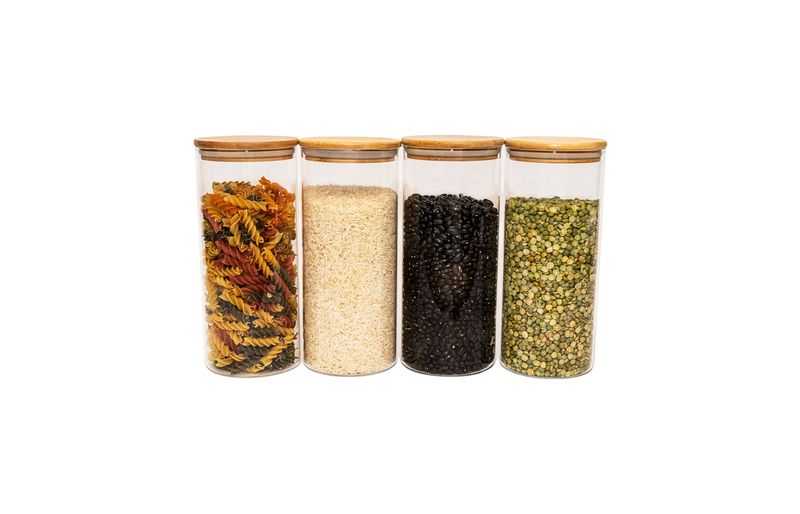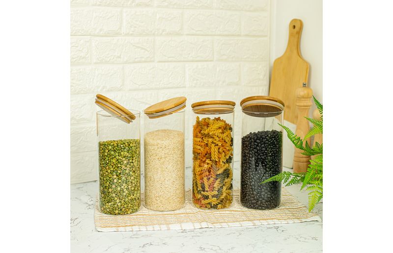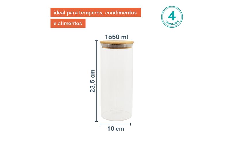 04 potes para mantimentos de 1650ml com tampa de bambu – oikos