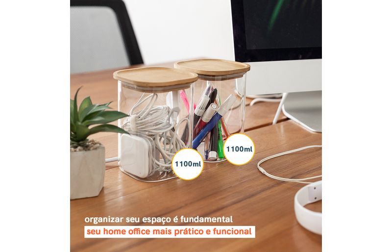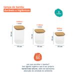 01 pote de vidro hermético para mantimentos quadrado de 1100ml com tampa de bambu – oikos