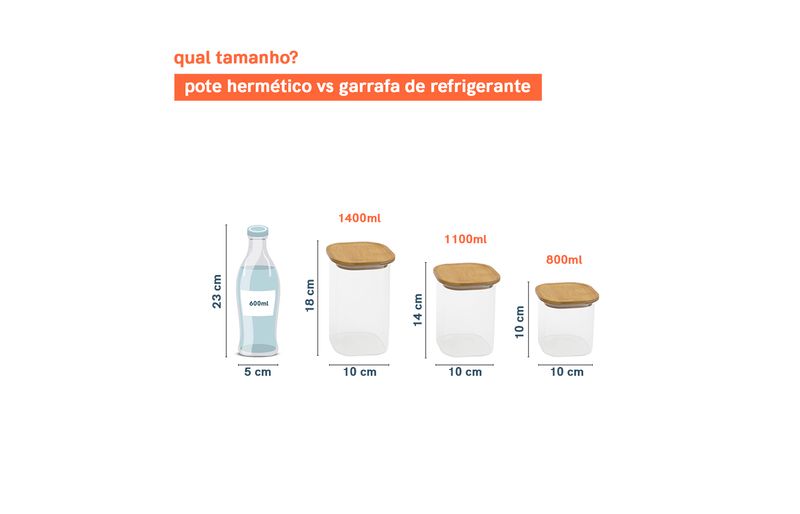 01 pote de vidro hermético para mantimentos quadrado de 1400ml com tampa de bambu – oikos