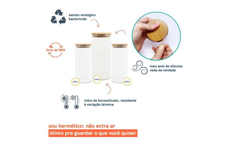 não julgue pelas aparências, ele não é só um potinho bonito: com a combinação da vedação de silicone e o bambu antibactericida, esse pote se torna um verdadeiro mestre na conservação de alimentos!