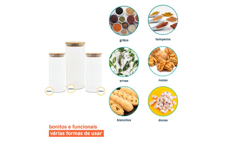 e não é só de comida que vive esse pote, nele também cabe: pisca-pisca, pregadores de roupa, decoração de natal, nozes, flores secas, fios, jogos, moedas, chaves, chocolates, peças de quebra-cabeça, bola de gude, marshmellows, cápsulas de café , itens de costura e o que mais você quiser guardar - isso que é versatilidade.
