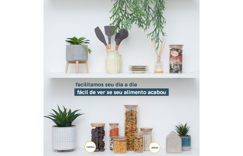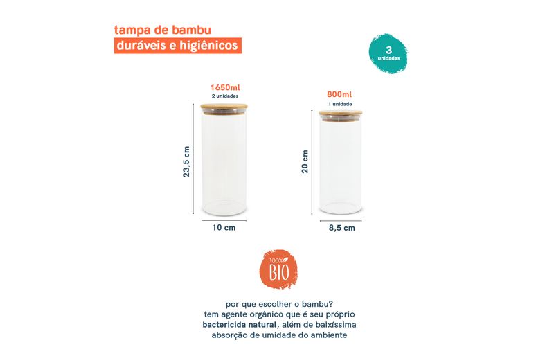 02 potes para mantimentos de 1650ml com tampa de bambu - oikos