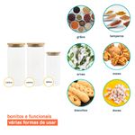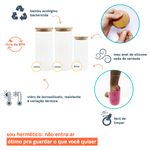 Esse é o kit de potes de vidro hermético para mantimentos com tampa de bambu da oikos.