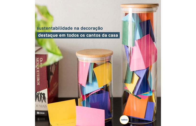 01 pote para mantimentos de 800ml com tampa de bambu - oikos
