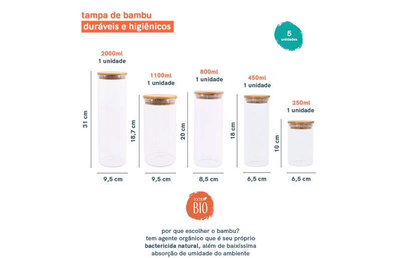 1 pote de mantimentos de 2000ml com tampa de bambu – oikos