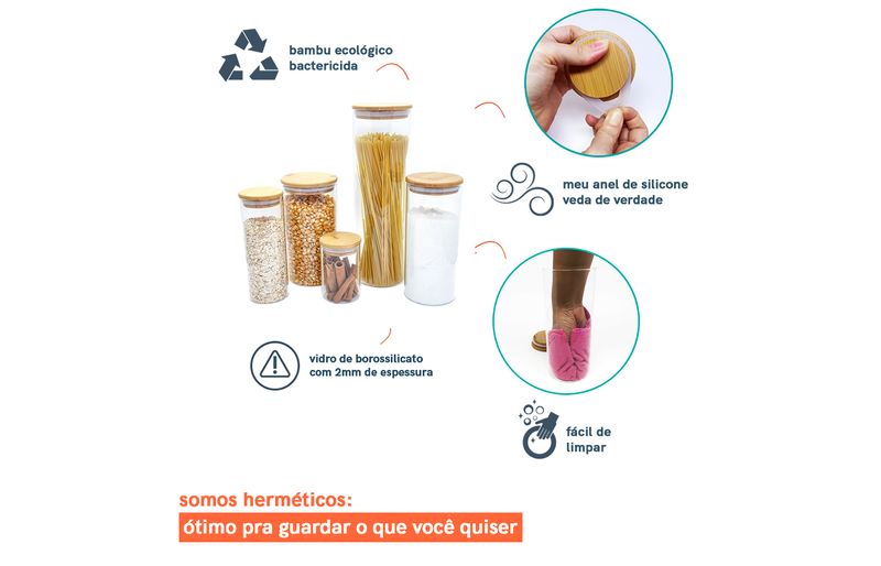 não julgue pelas aparências, ele não é só um potinho bonito: com a combinação da vedação de silicone e o bambu antibactericida, esse pote se torna um verdadeiro mestre na conservação de alimentos!