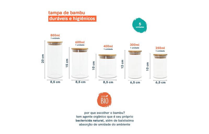 1 unidade do pote de mantimentos de 250ml com tampa de bambu – oikos